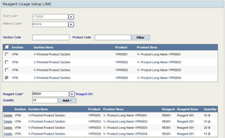 Spectrum Reagents maintains a complete list of purchased and prepared reagents used in the laboratory. Details of the reagents and standards used in the testing of a sample are maintained within this module. Each testing method is associated with the reagents and the quantity required for that particular test.